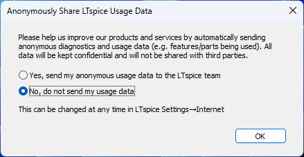 インストール後、LTspiceを起動して動作を確認します。