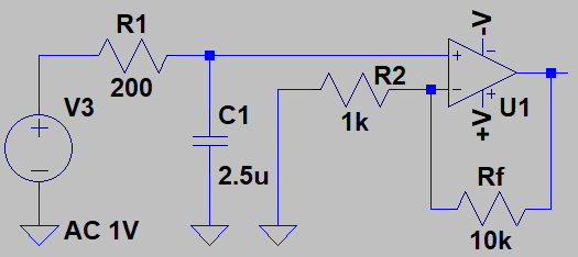 非反転増幅回路にRCフィルタを組み合わせます。