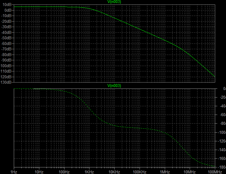 これで「1kHzでカット・2倍増幅」の回路になります。