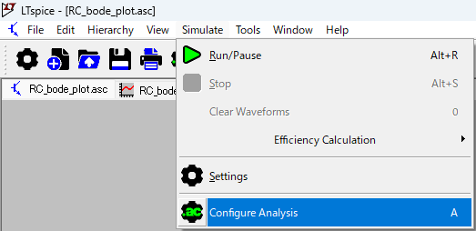 「Simulate → Configure Analysis」から、