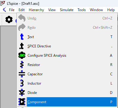 LTspiceで回路図を作成する手順は以下の通りです。