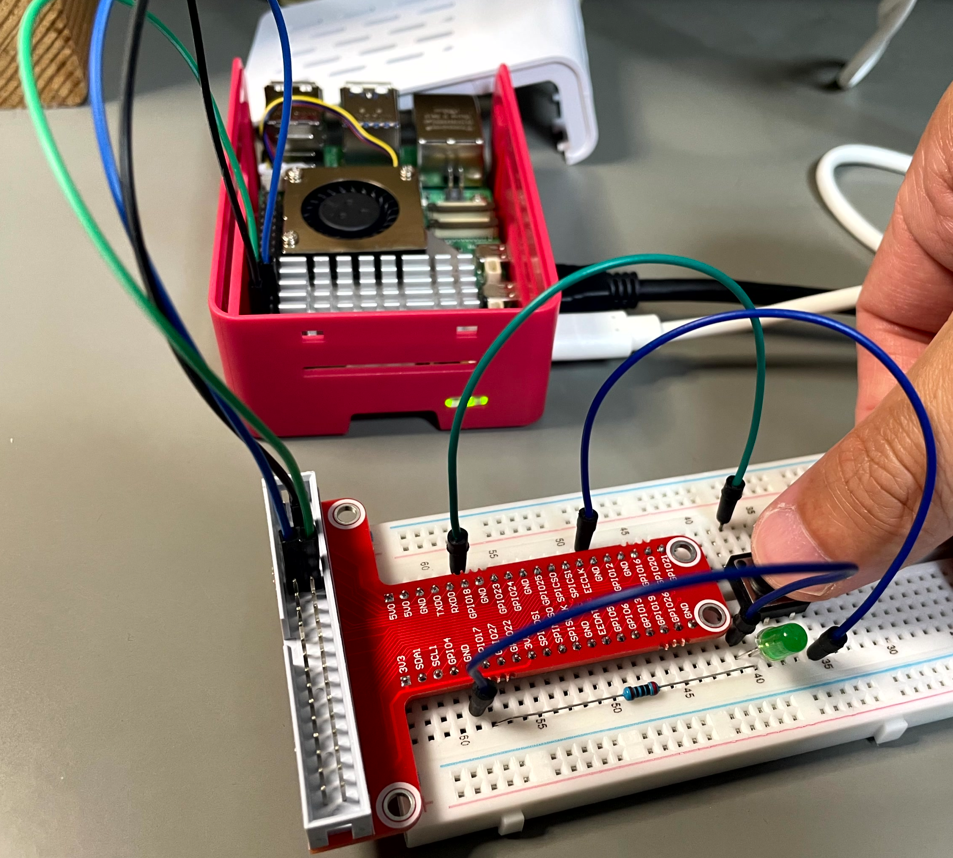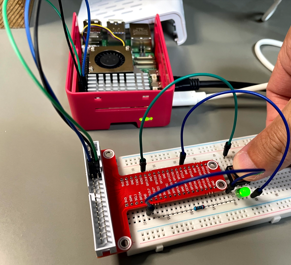 今回は以前の記事(Raspberry Pi 5でボタン入力してLEDを制御する方法)で構築した