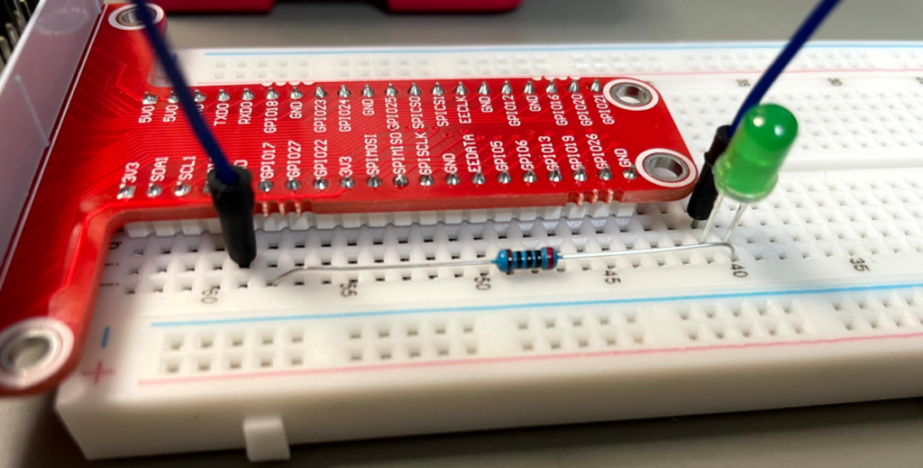 もし抵抗なしで接続すると、電流が流れすぎてLEDやRaspberry Piが壊れる可能性があります。