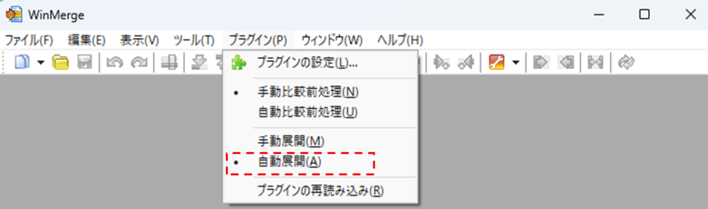 プラグインを追加した後は、WinMergeを再起動する必要があります。
